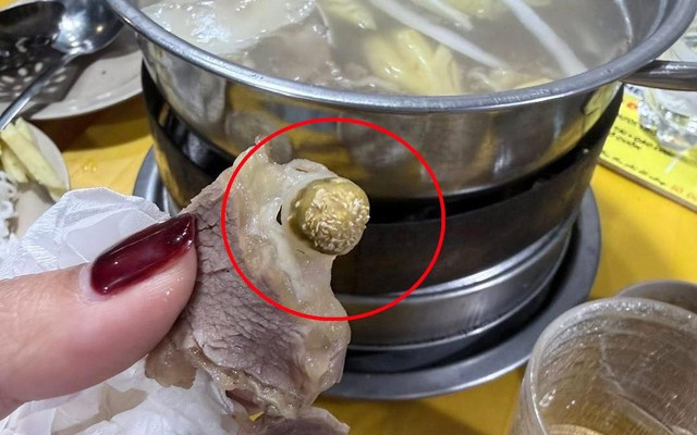Quản lý của quán bò nhúng dấm này cho hay khi kiểm tra thì đây là "cục tật" trong thịt bò chứ không phải dòi.