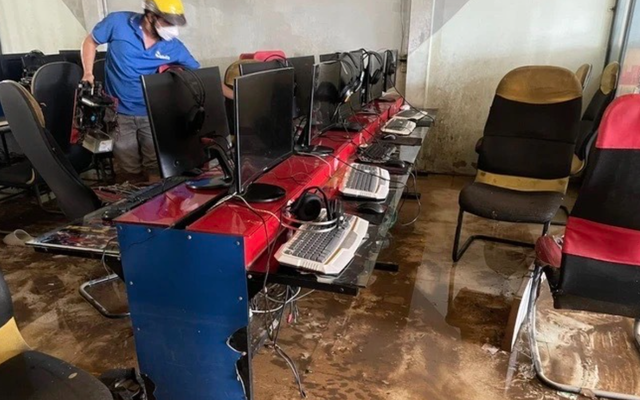 Quán game bị thiệt hại do lũ lụt, 30 máy bị ngấm nước.