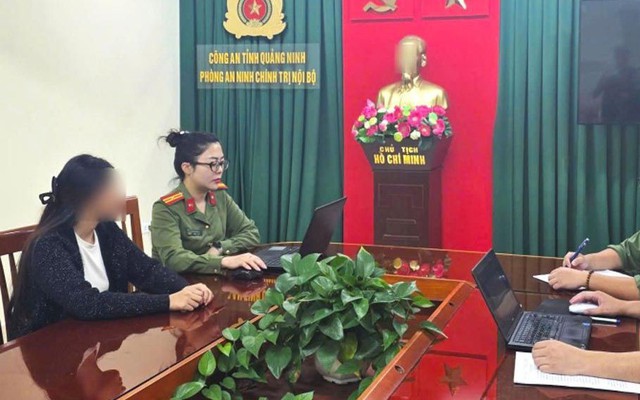 Công an tỉnh Quảng Ninh làm việc với đối tượng rao bán mã QR code vé xem "Hạ Long concert 2025". (Ảnh: Công an Quảng Ninh)