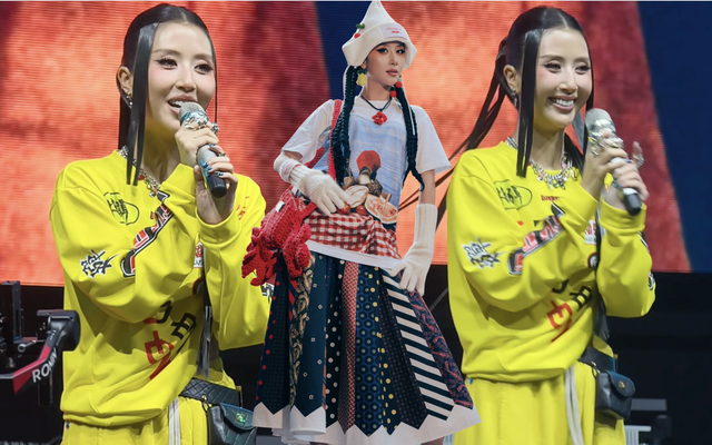 Tại sự kiện, nàng fashionista đi hát diện một bộ tracksuit màu vàng mù tạt của LỰU ĐẠN - thương hiệu mang đậm niềm tự hào khi đem danh xưng thuần Việt gây tiếng vang trên đất Mỹ, đồng thời ghi dấu ấn cùng nhiều ngôi sao và vận động viên nổi tiếng thế giới.