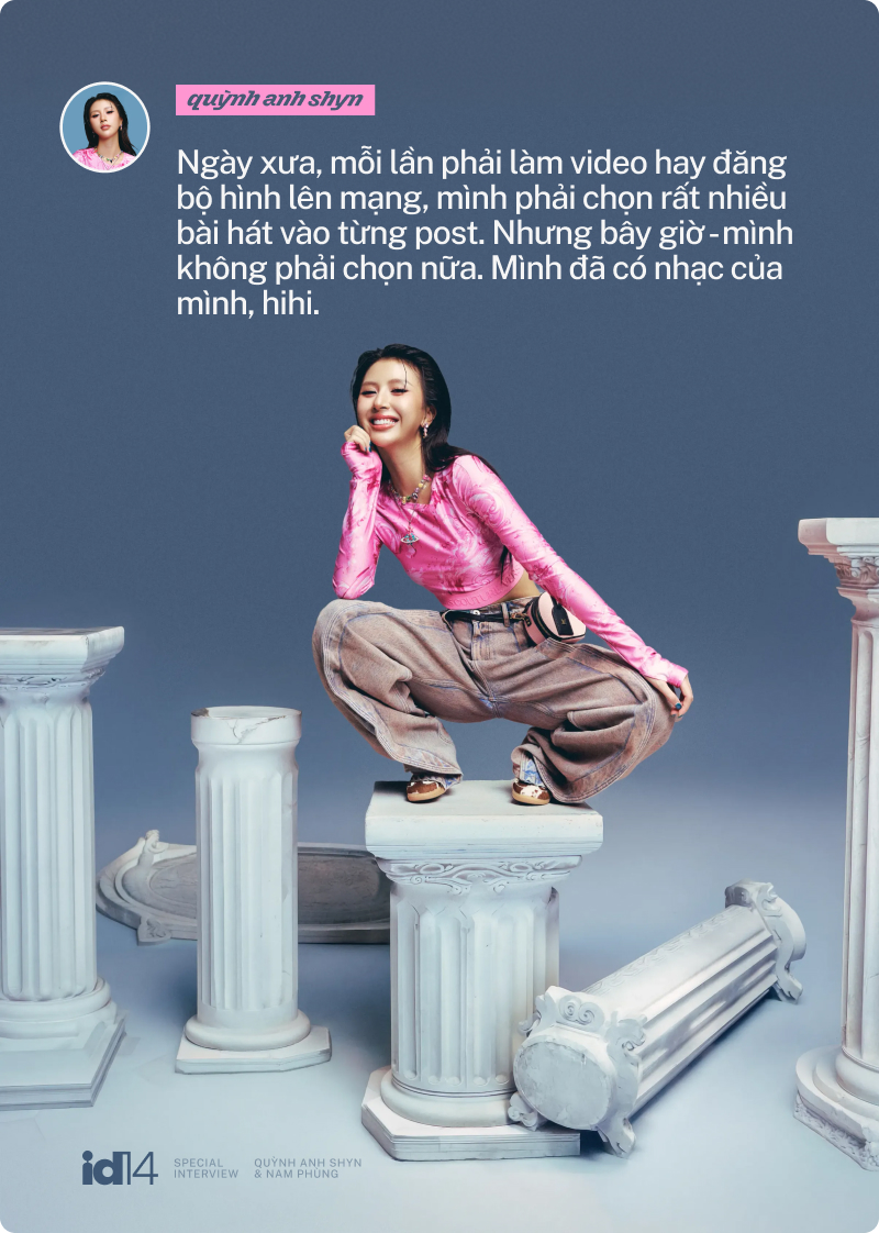 Quỳnh Anh Shyn: Ngày xưa, mỗi lần phải làm video hay đăng bộ hình lên mạng, mình phải chọn rất nhiều bài hát vào từng post. Nhưng bây giờ - mình không phải chọn nữa. Mình đã có nhạc của mình, hihi.