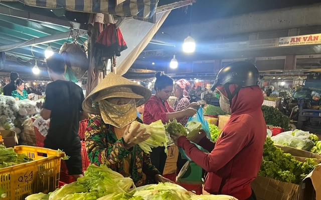 Thông tin từ Công ty quản lý chợ đầu mối Thủ Đức cho biết đêm 30/11 rạng sáng 1/12, lượng rau củ về chợ là 1.548 tấn, tăng 34 tấn so với hôm trước. Các loại bầu, dưa leo, khổ qua, ngò rí hàng về nhiều, giá bình quân giảm từ 1.000 – 10.000 đồng/kg so với phiên hôm trước.