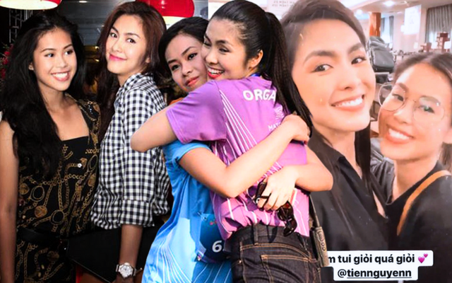 Cặp chị em thân thiết luôn rạng rỡ khi cùng đứng cùng 1 khung hình, lúc đó Hà Tăng đã sở hữu sự tự tin, vẻ đẹp kiêu hãnh của một ngôi sao, trong khi đó Tiên Nguyễn vẫn còn khá rụt rè.