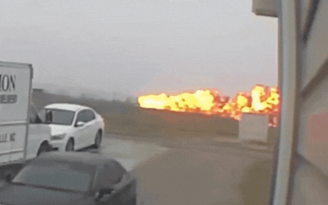 Ngay sau đó, máy bay đâm mạnh xuống mặt đất và phát nổ, tạo thành một quả cầu lửa khổng lồ. Ngọn lửa bao trùm toàn bộ thân máy bay, trong khi cột khói đen dày đặc bốc cao lên bầu trời, có thể nhìn thấy từ khoảng cách xa.
