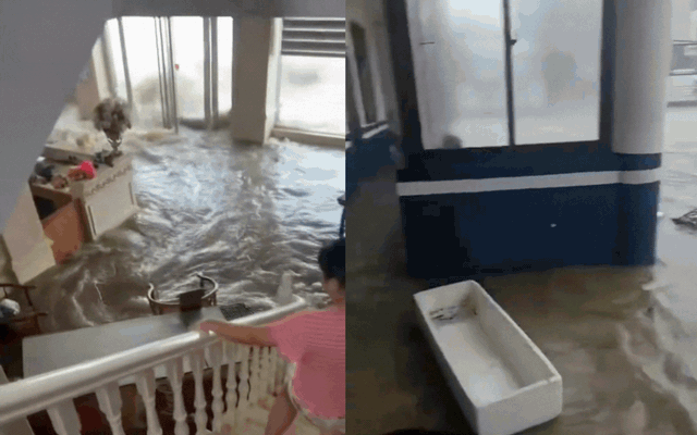 Những hình ảnh và clip được chia sẻ trên mạng cho thấy bão đổ bộ kéo theo mưa to và gió rất lớn, lũ cuốn vào nhà dân.