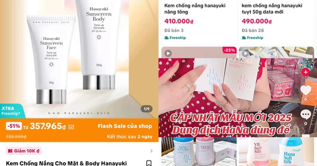 Tuy nhiên, trên nền tảng thương mại điện tử, sản phẩm Hanayuki vẫn xuất hiện tại nhiều gian hàng như: kem chống nắng, dung dịch vệ sinh phụ nữ, dầu gội, dầu xả.