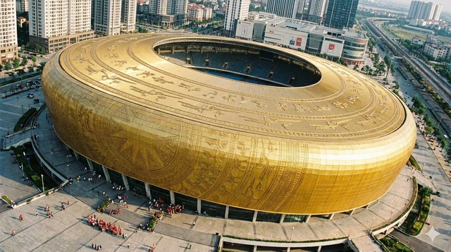 Sân vận động Hùng Vương là công trình được lấy cảm hứng từ trống đồng Đông Sơn và hình tượng chim Lạc.