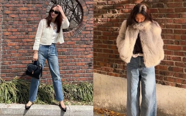 Jeans luôn là món đồ thời trang cơ bản không thể thiếu trong tủ đồ của bất kỳ ai. Đặc biệt là những chiếc quần jeans xanh cổ điển, được các sao Hàn ngoài 40 tuổi ưa chuộng vì tính dễ phối đồ và khả năng hack tuổi tuyệt vời. Những chiếc jeans này thường có thiết kế đơn giản, vừa vặn với cơ thể, không quá ôm sát nhưng cũng không quá rộng, tạo nên sự thoải mái mà vẫn tôn lên được vóc dáng.