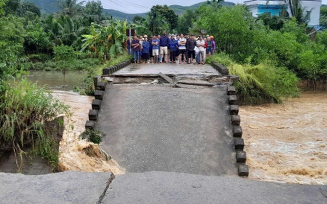 Theo đó, khoảng 5h15 cùng ngày, nhiều người dân hốt hoảng khi chứng kiến cầu Cây Sung (thuộc thôn Phước An) đổ sập.