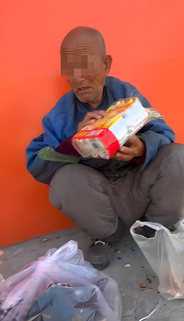 Hình ảnh nam sinh họ Lưu mang đồ ăn cho cụ già được ghi lại