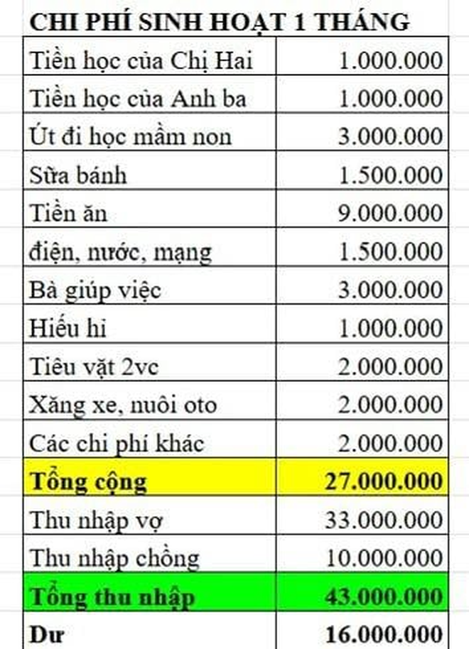Dưới phần bình luận, hàng trăm câu hỏi được đặt ra, từ những khoản chi lớn đến các chi phí sinh hoạt rất nhỏ như tiền điện, nước, ăn uống hàng ngày... Nhiều người bất ngờ khi biết rằng từng khoản chi đều được gia đình tính toán và điều chỉnh khá chặt chẽ.