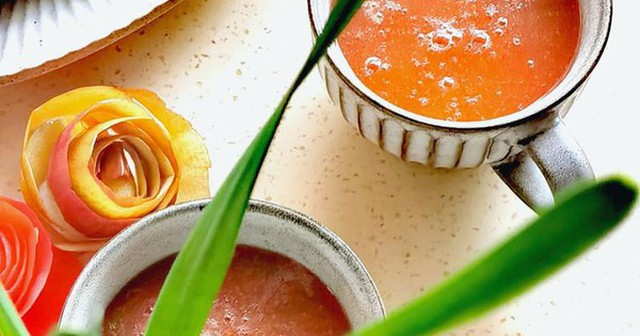 1. Thức uống thanh lọc cơ thể buổi sáng: Nước gạo rang gừng và táo đỏ (giúp giảm tích nước)