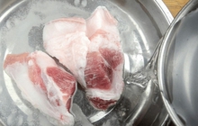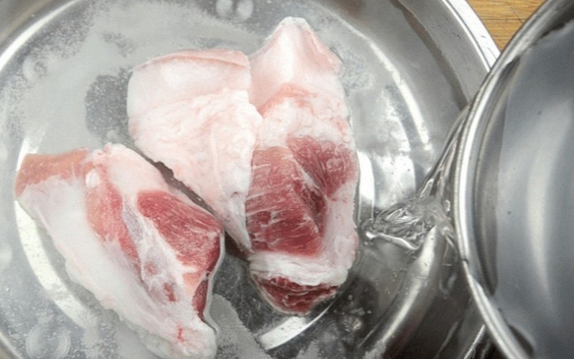 Không rã đông bằng nước nóng vì nhiệt độ cao làm thịt chín tái, mất nước và dễ sinh vi khuẩn. Nếu có thời gian, cách tốt nhất vẫn là chuyển thịt từ ngăn đá xuống ngăn mát trước 6 đến 8 giờ. Thịt tan chậm nhưng giữ trọn vị ngọt.