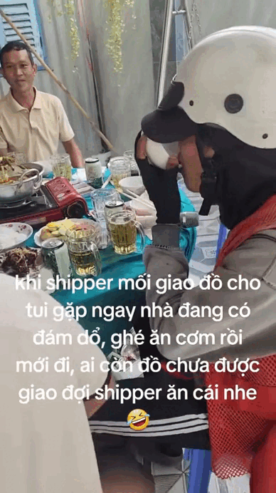 Dạo một vòng trên MXH, dễ nhận ra một điều rằng shipper ở miền Tây có thể lo nắng lo mưa khi chạy ship cả ngày dài, chứ tuyệt nhiên chẳng bao giờ phải lo... đói bụng. Bởi ở đây, chuyện shipper được khách mời vào nhà ăn cơm đã trở thành điều rất đỗi quen thuộc. Thậm chí, nếu đúng thời điểm nhà đang có cỗ có tiệc, có khi shipper còn được rủ rê “nhập hội” luôn, ngồi xuống dùng bữa như người thân trong gia đình. Trên MXH, không khó để bắt gặp những video ghi lại khoảnh khắc shipper miền Tây "ăn ké" bữa cơm cùng khách, luôn thu hút nhiều lượt tương tác vì sự thú vị và gần gũi. Có thể thấy, chỉ cần thêm đôi chén đôi đũa là đôi bên có thể ngồi ăn với nhau rất tự nhiên, như bạn bè lâu ngày gặp lại.