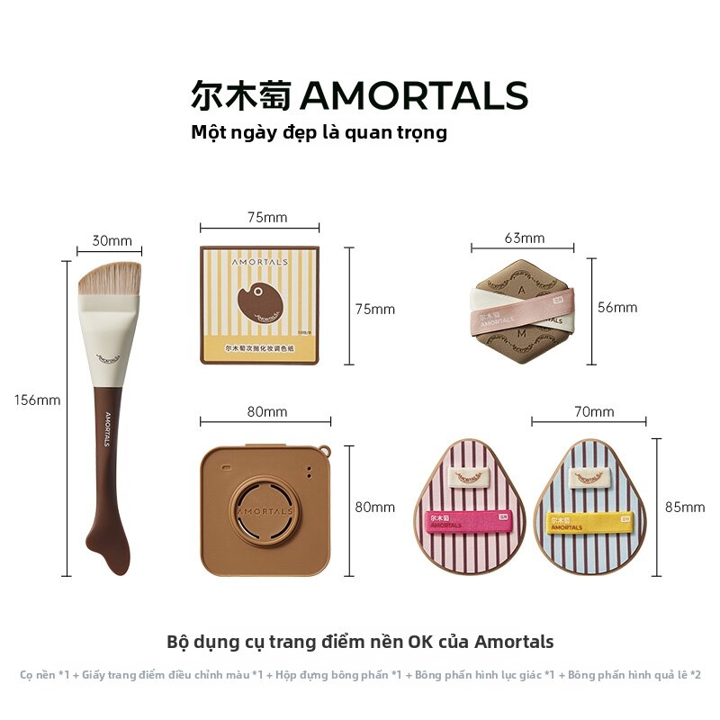 Không chỉ mỹ phẩm, các nàng cũng đừng bỏ qua bộ dụng cụ lót nền AMORTALS. Set gồm cọ đuôi cá và bông phủ giúp tán kem nền đều, hạn chế vệt mốc. Cọ có thiết kế lông mềm, bản rộng giúp tán nền nhanh, trong khi bông phủ hỗ trợ dặm lại lớp makeup để tăng độ mịn. Khi sử dụng kết hợp, lớp nền trông tự nhiên hơn và bám tốt hơn. Với mức giảm hơn 50%, đây là món phụ kiện đáng thêm vào giỏ hàng nếu bạn đang muốn nâng cấp routine trang điểm.