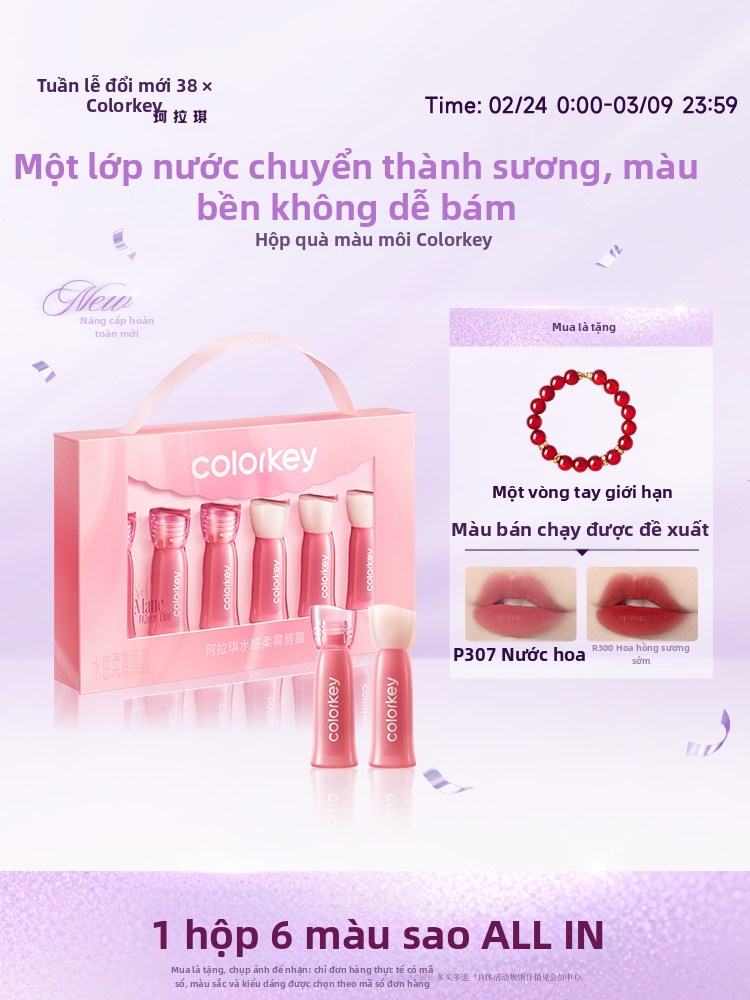 Cuối cùng là bộ son mini từ COLORKEY – lựa chọn phù hợp cho những nàng thích thử nhiều màu. Bộ gồm nhiều sắc son khác nhau, từ tông MLBB nhẹ nhàng đến màu đậm cá tính. Thiết kế mini nhỏ gọn giúp bạn dễ mang theo trong túi xách. Chất son lì nhưng vẫn giữ độ mềm môi tương đối, phù hợp sử dụng hằng ngày. Đặc biệt trong dịp sale sinh nhật Lazada, mức giá giảm sâu kịch đáy đến 63% từ giá gốc 938.000đ xuống còn 350.000đ khiến set son trở nên hấp dẫn hơn bao giờ hết. Chị em nhanh tay kẻo để lỡ chiếc deal xịn này.