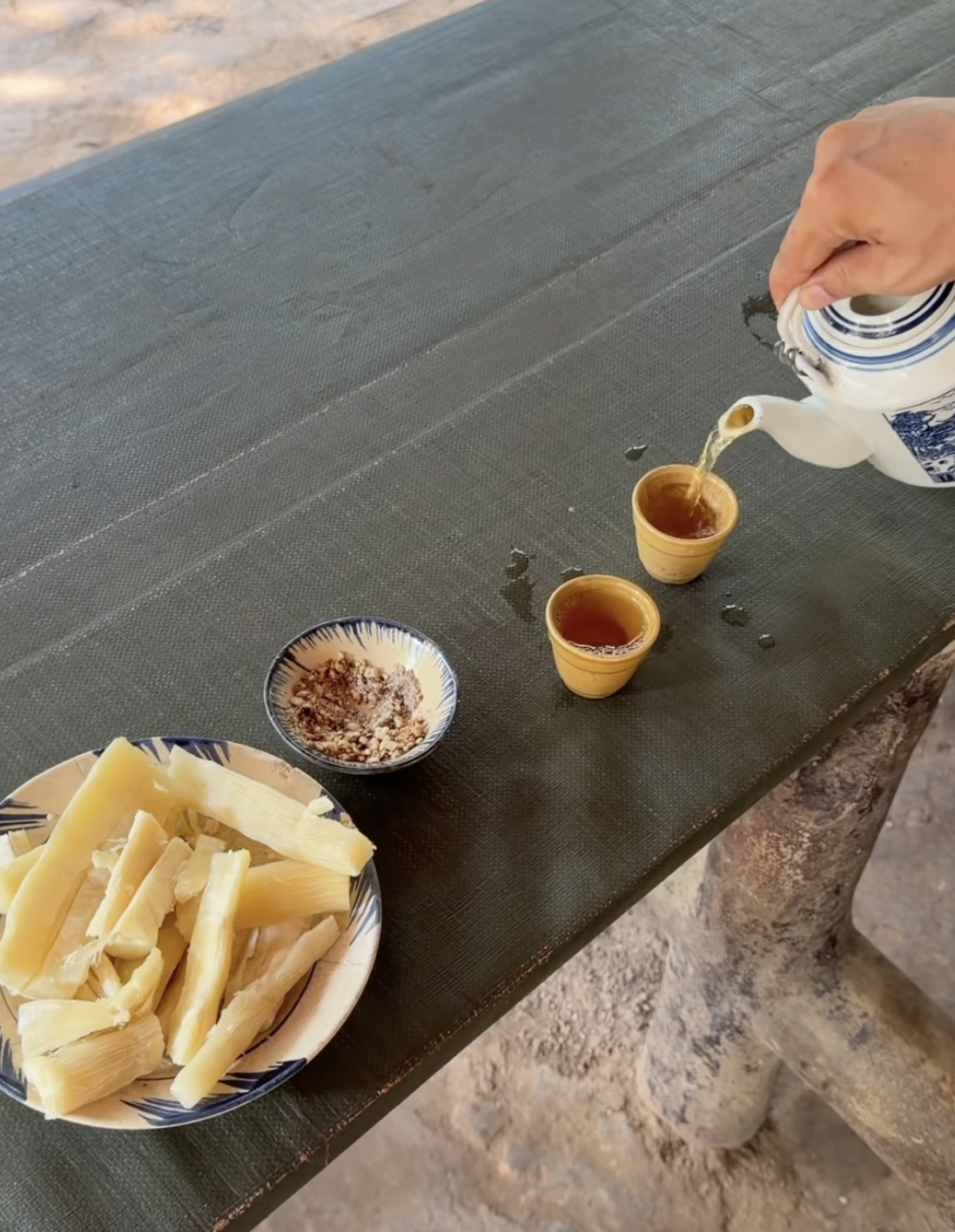 Tay vợt pickleball Mỹ thử uống nước chè và ăn sắn