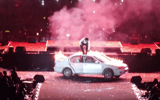 SOOBIN biểu diễn với chiếc ô tô phập phùng lửa đằng sau (Nguồn: violetsimeboremcuasubin)