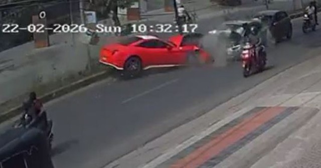 Đoạn clip từ camera giám sát ghi lại vụ tai nạn cho thấy, chiếc xe thể thao hạng sang bị hất lên không trung trong giây lát sau khi người lái mất kiểm soát, đâm vào cột đèn với tốc độ cao rồi va chạm với một chiếc ô tô và các phương tiện khác đang đi ngược chiều. Vụ va chạm khiến nhiều ô tô và xe máy bị hư hỏng nặng, trong khi chính chiếc Ferrari cũng bị thiệt hại.