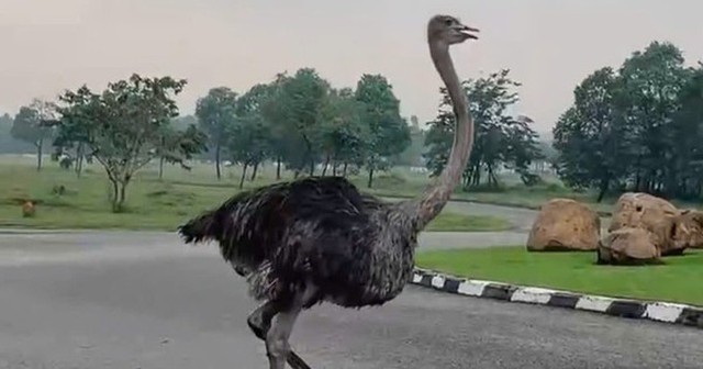 CLIP: Con Đà điểu chạy bon bon trong Khu Công nghiệp Mỹ Phước 2