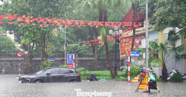 Mưa ngập trên phố Phùng Hưng, phường Hoàn Kiếm chiều
