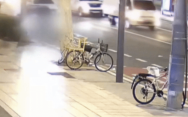 Cú va chạm mạnh đã làm hư hỏng 1 phần cột điện và khiến loạt xe đạp đang dựng trên vỉa hè bị đổ, đồng thời không gây ra thiệt hại về người.