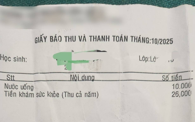 Mới đây, một biên lai thu tiền chỉ gồm 2 khoản, chưa tới 40 nghìn đồng của một trường THCS ở TP.HCM được phụ huynh chia sẻ gây "sốc". Theo đó, giấy báo thu gồm nước uống 10 nghìn đồng; tiền khám sức khoẻ (thu cả năm) 26 nghìn đồng, tổng là 36 nghìn đồng. Nhiều phụ huynh ngạc nhiên: Tại sao lại có trường chỉ thu "tối giản" đến thế này, nhất là trong bối cảnh đầu năm học, phụ huynh ở nhiều nơi phải đóng hàng loạt khoản tiền: học hai buổi, bán trú, kỹ năng sống, tiếng Anh liên kết...