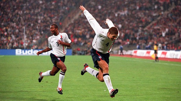 Nhận bóng bật ra từ vòng cấm, Gerrard tung cú vô lê sấm sét từ khoảng cách khoảng 25m làm tung lưới đội tuyển Đức. Những cú sút như vậy cho đến nay đã trở thành thương hiệu của đội trưởng Liverpool. Tuyển Anh sau đó cũng đã giành chiến thắng oanh liệt 5-1 trước Đức ngay tại Munich. Qua đó đã thắp lên hi vọng giành vé tham dự World Cup 2002 diễn ra tại Nhật Bản và Hàn Quốc. Với cá nhân Gerrard, đây cũng là bàn thắng đầu tiên anh ghi được trong màu áo Tam sư.