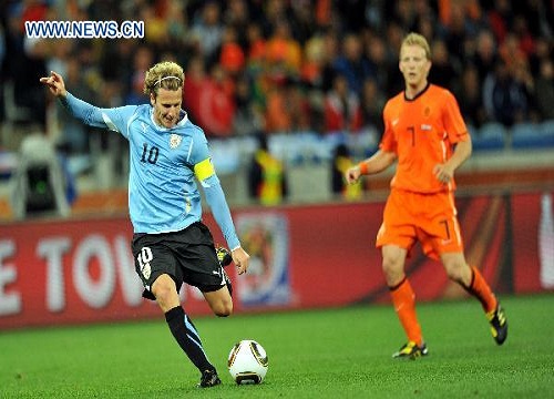 Sau bàn thua, các cầu thủ Uruguay quyết định dâng cao đội hình tấn công và tạo ra một sức ép đáng kể về phía khung thành Hà Lan. Nỗ lực tấn công của họ được đền đáp xứng đáng. Phút 42, sau tình huống tấn công thẳng vào trung lộ, Forlan tung cú sút chân trái hiểm hóc hạ gục thủ môn Stekelenburg quân bình tỷ số 1-1.