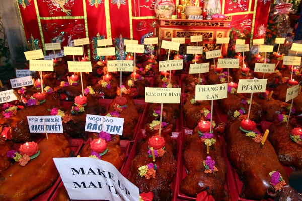 Hình ảnh con heo quay cúng tổ của Bảo Thy gây chú ý