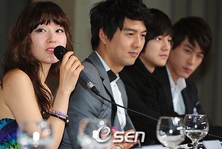 Trong chiếc váy rất quyến rũ và rực rỡ, nữ diễn viên Park Jin Hee tự tin sải bước bên “đàn em” Kim Bum trong buổi họp báo. Họ trở thành cặp đôi bị “soi” và được “chăm sóc” kỹ nhất trong suốt thời gian diễn ra họp báo. Trước đông đảo ký giả, Kim Bum tiết lộ, anh rất run khi được chọn vào vai chàng người yêu kém tuổi của Park Jin Hee nhưng sau đó lại không thấy chút khó khăn nào khi phải yêu một người phụ nữ hơn tuổi.