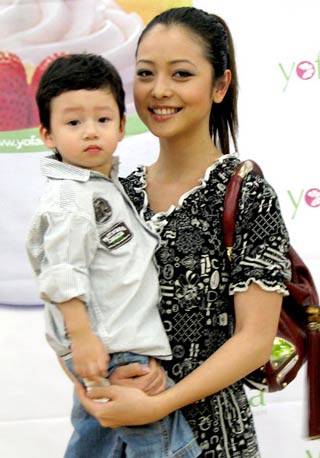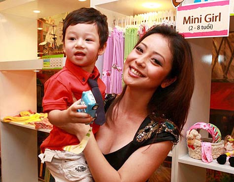 Jennifer Phạm cùng con trai tại lễ khai trương cửa hiệu của diễn viên Trang Nhung