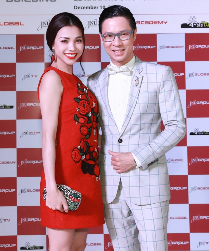 Tới tham dự khai trương trụ sở mới của công ty, MC Anh Quân lịch lãm bên cạnh vẻ rực rỡ, xinh đẹp, rất… Hàn Quốc của nữ ca sĩ Trà Ngọc Hằng. Trà Ngọc Hằng diện chiếc đầm đỏ ngắn hiệu Dolce & Gabana nhẹ nhàng, trẻ trung mà lịch lãm.