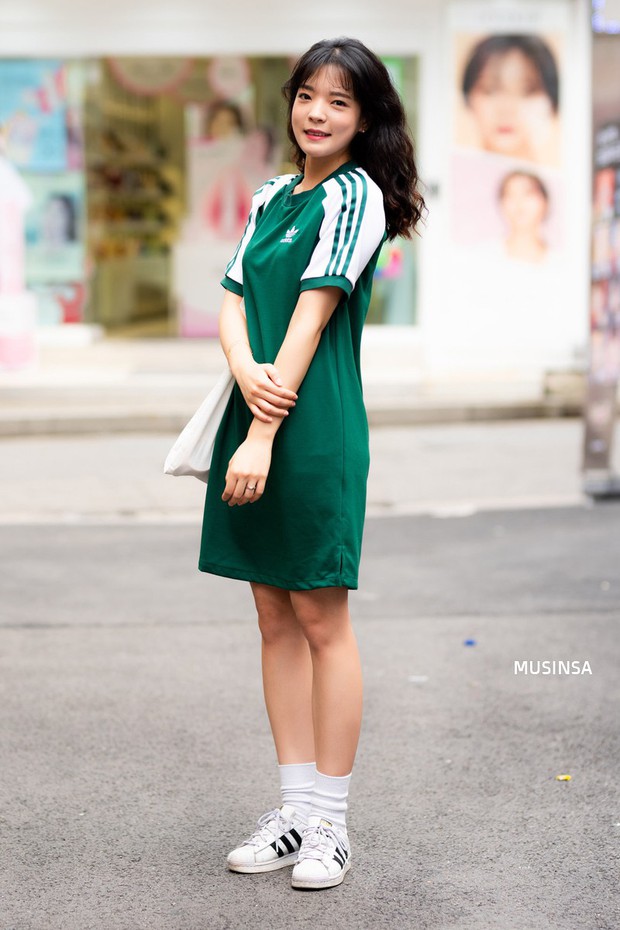 Váy T-shirt và giày sneaker luôn là combo đơn giản, mát mẻ, khỏe khoắn mà cô nàng nào diện cũng xinh.