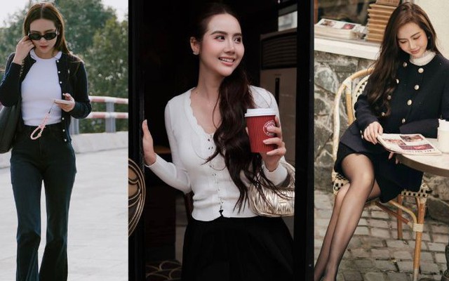 Set đồ trên của Huyền Lizzie bao gồm những item quen thuộc như áo thun trắng, cardigan mỏng và quần ống vẩy. Khi kết hợp các món đồ này lại với nhau, người mặc có được vẻ ngoài rất trẻ trung nhưng không kém phần thanh lịch, trang nhã. Bộ cánh còn mang đến hiệu quả tôn dáng tối ưu nhờ thao tác sơ vin và thiết kế quần ống vẩy.