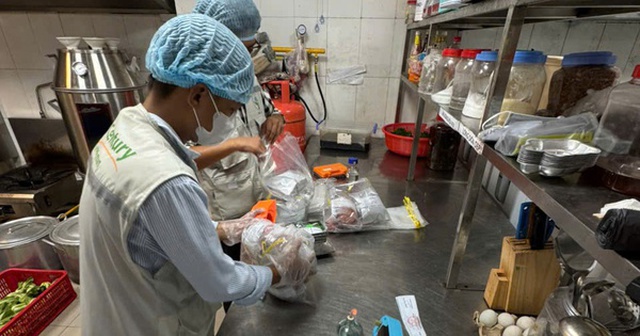 Đoàn công tác đã kiểm nghiệm an toàn thực phẩm đối với 2 mẫu thực phẩm (thịt heo xá xíu, thịt ba rọi heo) của chủ cơ sở Đ.N.M.K dùng để chế biến thức ăn bán cho khách hàng.
