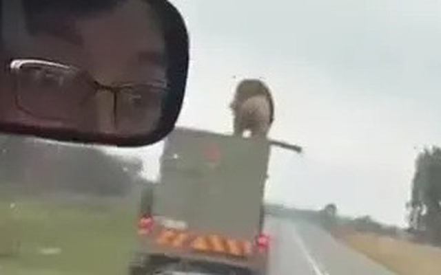 Con sư tử nhảy khỏi chiếc xe tải đang chạy