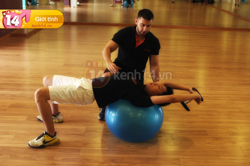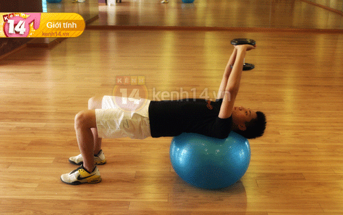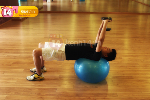 Dụng cụ cần chuẩn bị: bóng tập thể hình, 1 quả tạ tay nặng khoảng 5-10kg. Những dụng cụ này các ấy có thể tìm thấy trong các cửa hàng bán dụng cụ thể thao đấy!