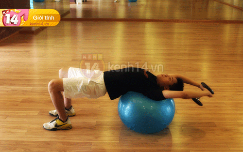 Nửa thân trên nằm lên bóng sao cho: toàn bộ phần từ gáy, cổ, vai và lưng trên đều được bóng nâng đỡ. Vai nằm ở giữa trái bóng.