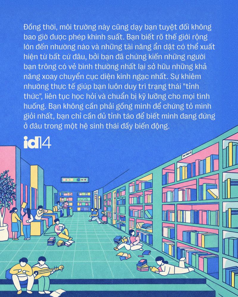 Sự khiêm nhường này không đồng nghĩa với sự tự ti hay nhu nhược. Ngược lại, nó tạo nên một loại tự tin đặc biệt của kẻ đã "kinh qua lửa đạn". Khi bạn đã từng sống, học tập và thậm chí là thất bại giữa một bầy "quái vật" trí tuệ, bạn sẽ hình thành một cái nhìn rõ ràng về năng lực con người. Bạn không còn cảm thấy sợ hãi hay choáng ngợp trước những nhân vật tầm cỡ ngoài xã hội, bởi đơn giản, bạn biết rõ họ cũng từng là những người bạn cùng khóa, từng thức đêm ăn mì gói hay cũng có những giây phút lúng túng trước một bài toán khó như bất kỳ ai.