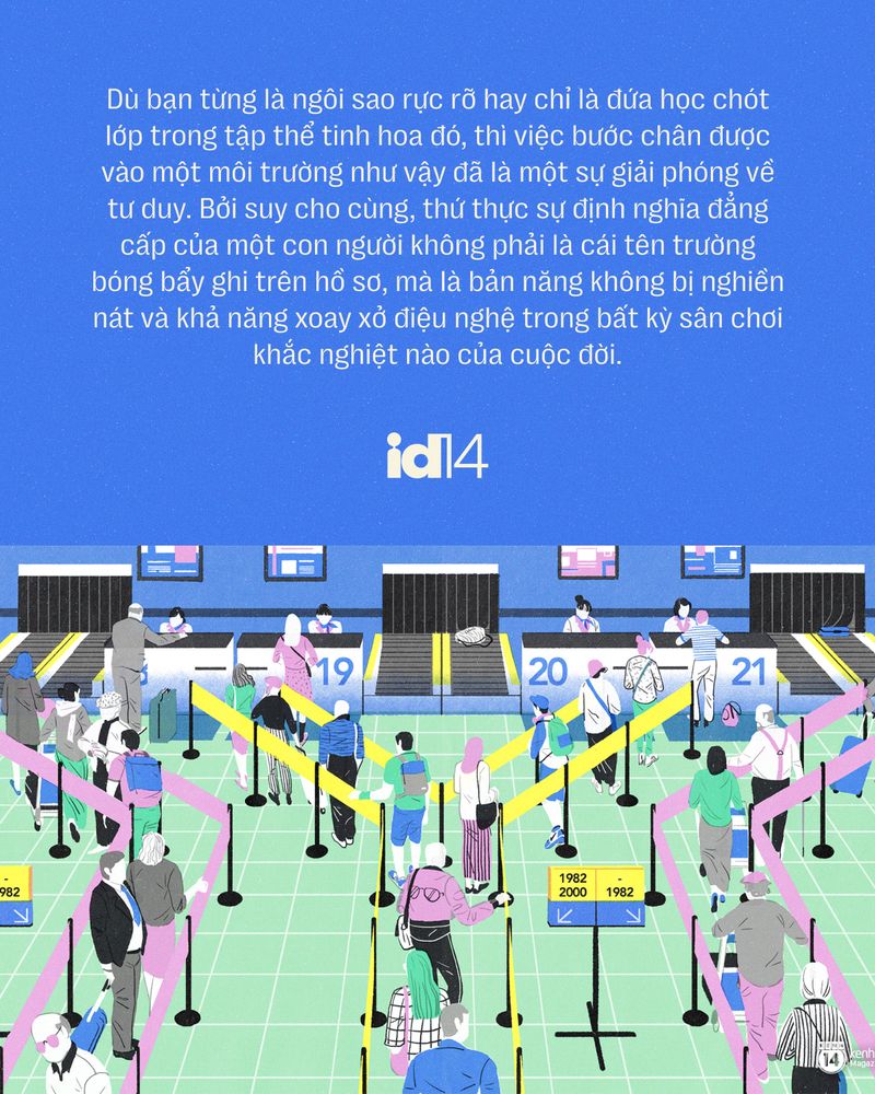 Dù bạn từng là ngôi sao rực rỡ hay chỉ là đứa học chót lớp trong tập thể tinh hoa đó, thì việc bước chân được vào một môi trường như vậy đã là một sự giải phóng về tư duy. Bởi suy cho cùng, thứ thực sự định nghĩa đẳng cấp của một con người không phải là cái tên trường bóng bẩy ghi trên hồ sơ, mà là bản năng không bị nghiền nát và khả năng xoay xở điệu nghệ trong bất kỳ sân chơi khắc nghiệt nào của cuộc đời.