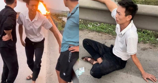 Đoạn video dài một phút đang lan truyền trên mạng xã hội tối 26/2 ghi lại khoảnh khắc người tài xế xe tải bật khóc nức nở bên cao tốc, phía trước là chiếc xe tải cùng hàng loạt xe máy cháy trơ khung.
