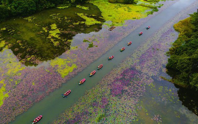 Dòng sông Ngô Đồng đẹp mộng mị trong sắc tím hồng của hoa súng