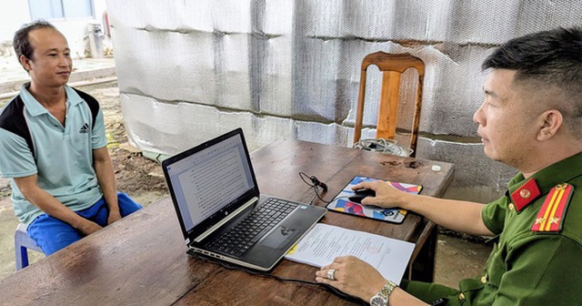 Cán bộ công an đang ghi lời khai đối tượng Nguyễn Văn Phúc