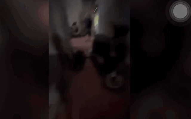 Người đàn ông xô người phụ nữ đang ôm con nhỏ ngã xuống nền gạch. Ảnh: Gif