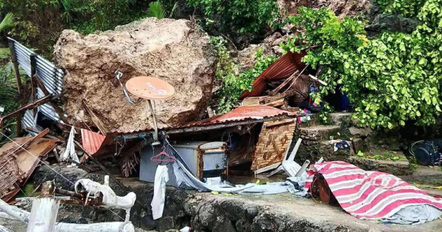 Một bé gái ở Medellin, Cebu, Philippines, là người sống sót duy nhất sau khi ngôi nhà của gia đình em bị một tảng đá lớn đè bẹp vào tối 30/9.