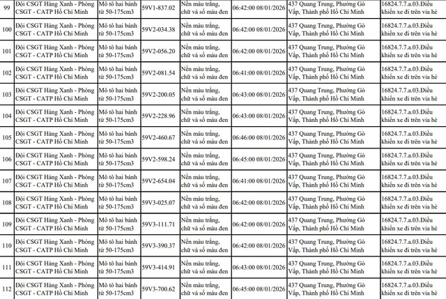 Ngày 21/1, Phòng Cảnh sát Giao thông, Công an TP. Hồ Chí Minh đã có thông báo nhiều trường hợp vi phạm trật tự, an toàn giao thông.