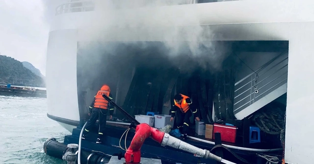 Bộ đội Biên phòng Cát Bà (Hải Phòng) phối hợp với Cảnh sát PCCC&CNCH kịp thời giải cứu 32 người vào bờ an toàn sau khi xảy ra sự cố cháy hầm máy.