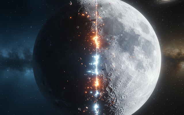 Mặt Trăng có thể là 2 thiên thể khác nhau ghép lại - Minh họa AI: Thu Anh