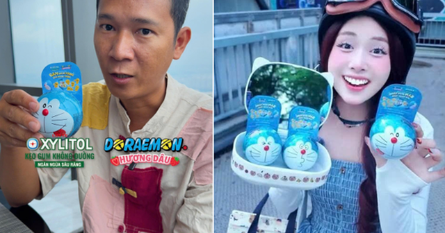 Tiktoker Quỳnh Sành Điệu gây thích thú với sản phẩm Lotte Xylitol Doraemon trên tay